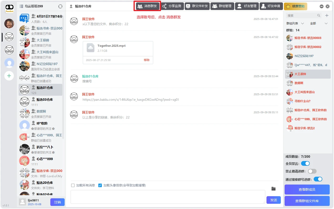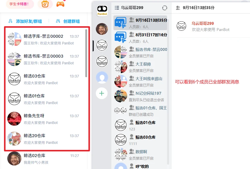 通过 PanBot 一键给群组&好友群发消息
