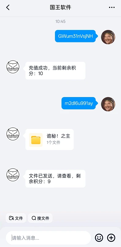 3.增加积分或会员到期时间,发送关键字或搜索网盘文件获取资源,并扣除积分